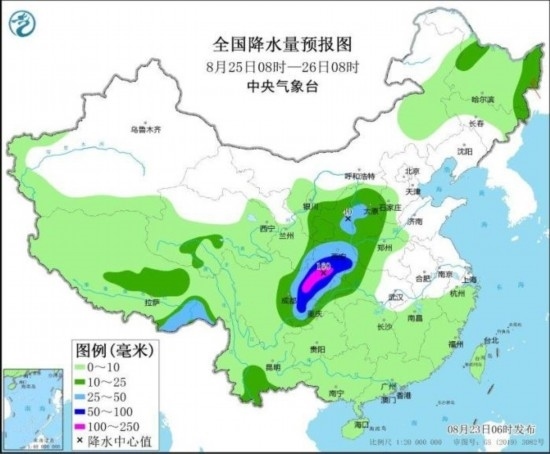 全國(guó)降水量預(yù)報(bào)圖(8月25日08時(shí)-26日08時(shí))