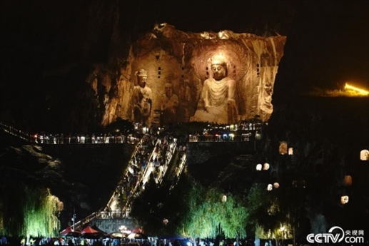 國(guó)慶假期,河南洛陽(yáng)龍門(mén)石窟開(kāi)啟夜游模式,吸引大量游客參觀游覽。