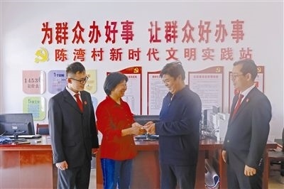 在法官的見證下,村委會干部將補償款送到陳某手中。