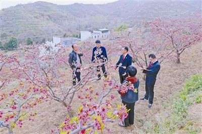 法官與鄉(xiāng)政府、村委會干部實地查看案涉土地,進一步了解案情。
