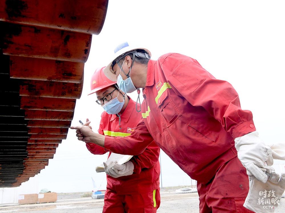 △中國石油大學(北京)克拉瑪依校區(qū)2020屆畢業(yè)生王首都(左)在克拉瑪依鉆井一線工作。