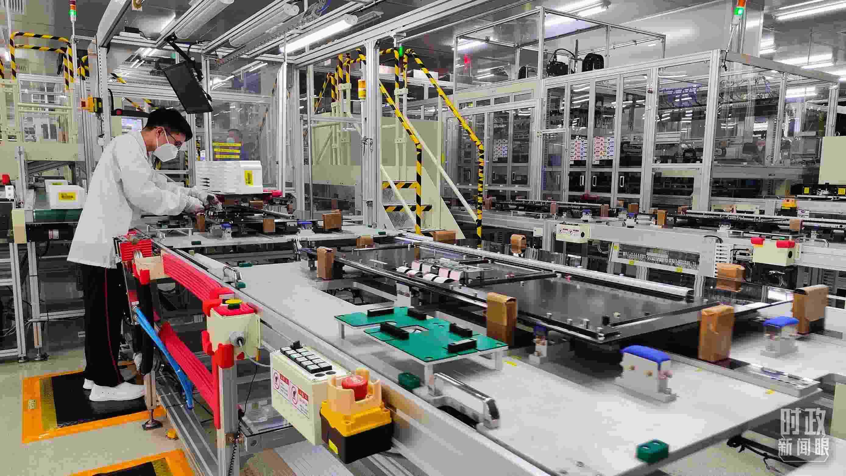 △顯示面板背面組裝生產(chǎn)線。(總臺(tái)央視記者楊立峰拍攝)