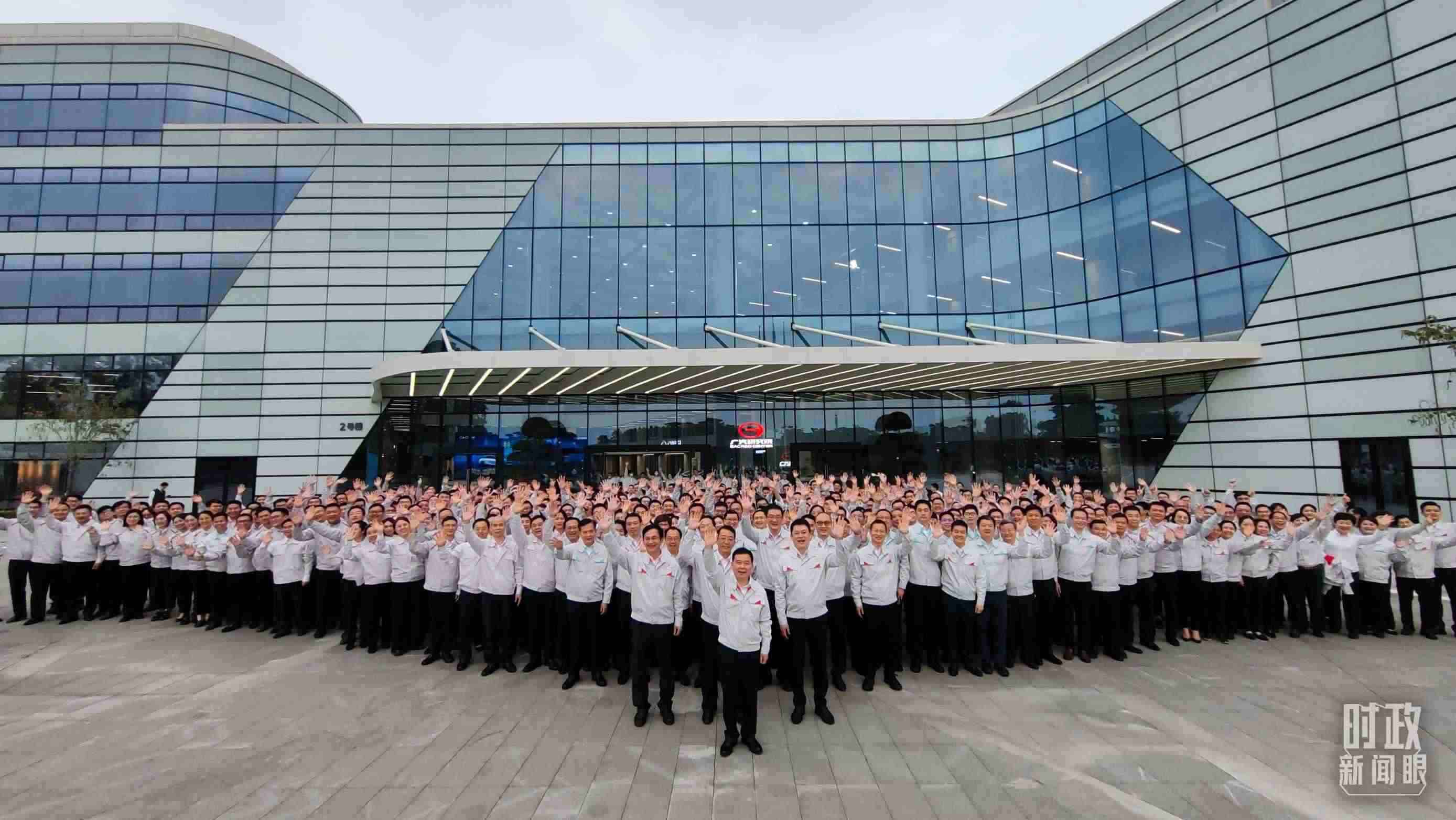 △考察當(dāng)天,廣汽員工代表大合影。(總臺(tái)央視記者張曉鵬拍攝)