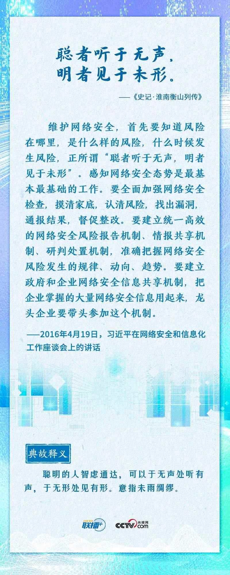 值此網(wǎng)絡(luò)安全和信息化工作座談會召開七周年之際,央視網(wǎng)《聯(lián)播+》推出海報,邀您一起重溫總書記的經(jīng)典論述。