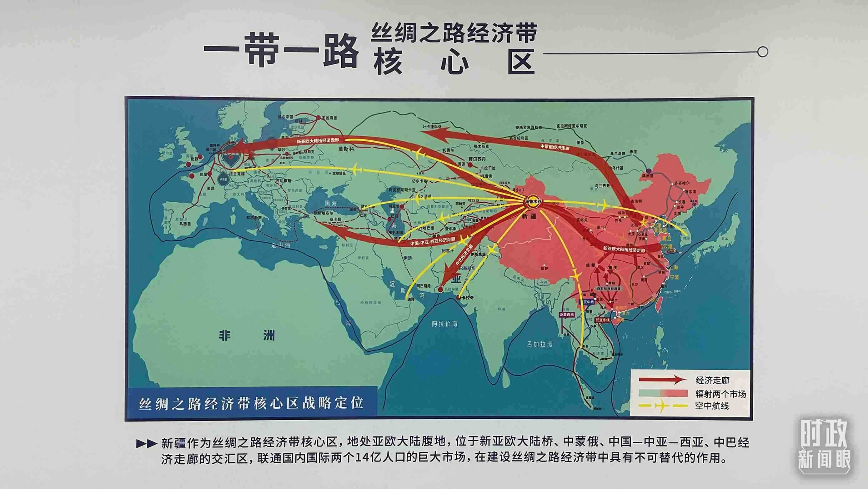 △新疆在絲綢之路經(jīng)濟(jì)帶建設(shè)中的區(qū)位優(yōu)勢。(總臺央視記者彭漢明拍攝)
