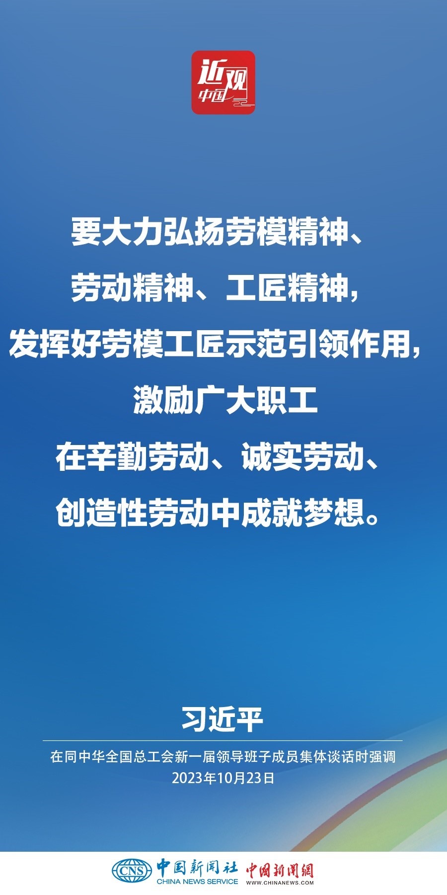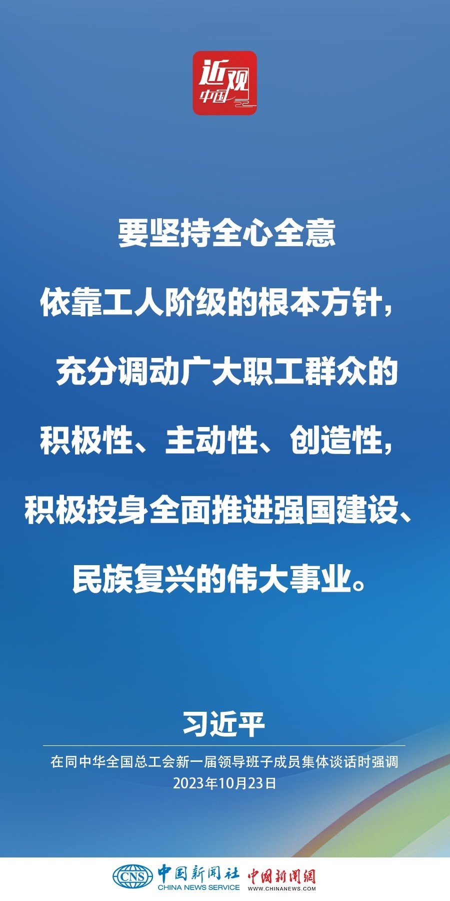 中共中央總書(shū)記、國(guó)家主席、中央軍委主席習(xí)近平23日下午在中南海同中華全國(guó)總工會(huì)新一屆領(lǐng)導(dǎo)班子成員集體談話(huà)并發(fā)表重要講話(huà)。他強(qiáng)調(diào)——