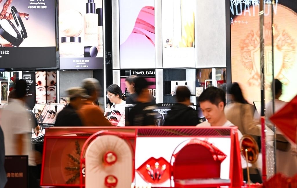 2023年10月28日,消費者在位于海南省??谑械暮?趪H免稅城內(nèi)購物。新華社記者楊冠宇 攝