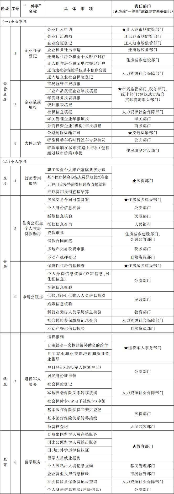 其中,屬于經(jīng)營(yíng)主體辦事的有3項(xiàng),包括企業(yè)遷移登記、企業(yè)數(shù)據(jù)填報(bào)、大件運(yùn)輸?shù)取耙患隆?。屬于個(gè)人辦事的有5項(xiàng),包括就醫(yī)費(fèi)用報(bào)銷、住房公積金個(gè)人住房貸款購房、申請(qǐng)公租房、退役軍人服務(wù)、留學(xué)服務(wù)等“一件事”。