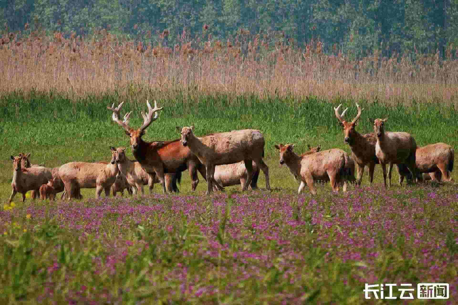 呦呦鹿鳴,食野之蘋。《詩經(jīng)》上的這一幕美好,在湖北省荊州市石首麋鹿國家級自然保護(hù)區(qū)重現(xiàn)了!