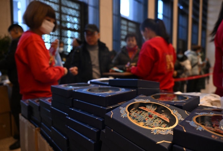 “買到了,真的太好看啦!”國家博物館內(nèi),捧著兩枚剛買到的“鳳冠冰箱貼”,觀眾小袁難掩興奮之情。