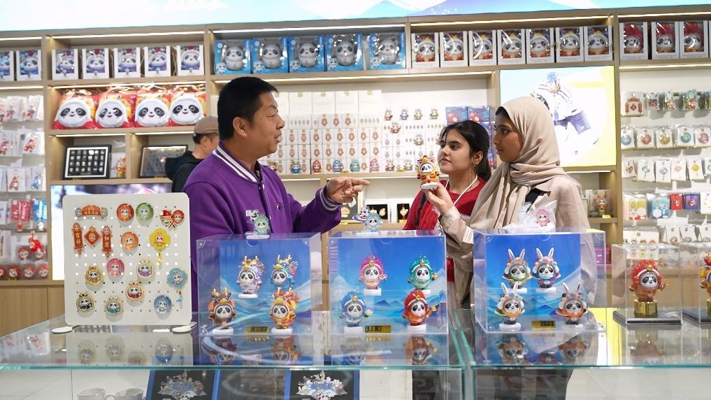 在第一站北京,她已給阿聯(lián)酋的親友準(zhǔn)備了不少禮物:中華美景冰箱貼、中式小帽子、大熊貓鑰匙扣、印有長(zhǎng)城圖案的杯子和紀(jì)念幣……在北京奧運(yùn)博物館紀(jì)念品商店,她頭一次接觸中國潮玩,對(duì)憨態(tài)可掬的盲盒玩偶“龍墩墩”愛不釋手。