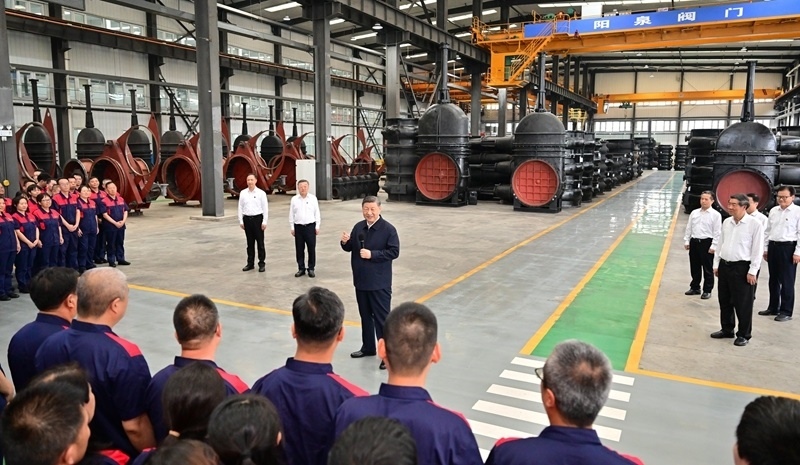 7月7日至8日,中共中央總書記、國(guó)家主席、中央軍委主席習(xí)近平在山西考察。這是7日下午,習(xí)近平在陽泉閥門股份有限公司考察。