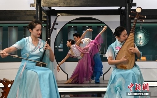 9月1日,表演者演繹中國傳統(tǒng)器樂和舞蹈。當日,杭州亞運會主媒體中心舉行媒體開放日活動,現場亮相的科技與傳統(tǒng)文化項目引人體驗。中新社記者 王剛 攝