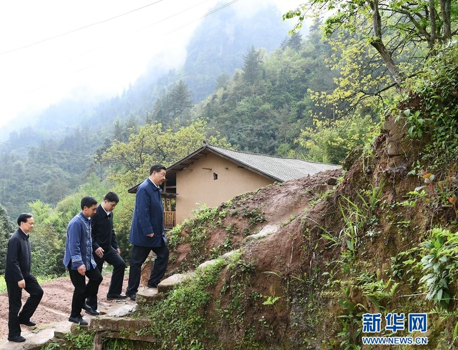 這是4月15日下午,習近平在石柱土家族自治縣中益鄉(xiāng)華溪村看望貧困戶譚登周一家。 新華社記者 謝環(huán)馳 攝