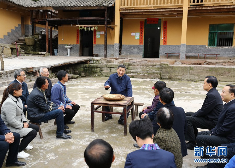 這是4月15日下午,習近平在石柱土家族自治縣中益鄉(xiāng)華溪村看望貧困戶譚登周一家。 新華社記者 劉彬 攝