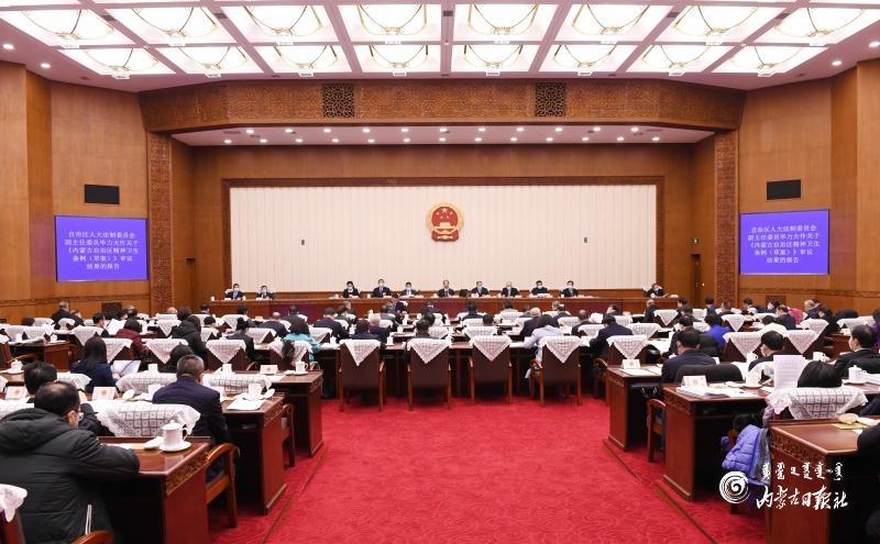通過會議議程后,會議聽取了張韶春作的關(guān)于提請任免職人員情況的說明;聽取了廉素作的關(guān)于《內(nèi)蒙古自治區(qū)促進民族團結(jié)進步條例(草案)》修改情況的報告。