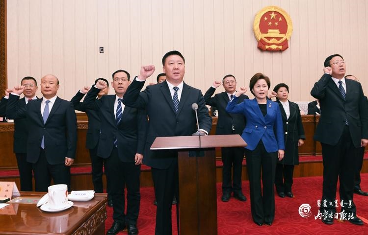 3月30日上午,自治區(qū)十三屆人大常委會第二十五次會議舉行憲法宣誓儀式。自治區(qū)黨委書記、人大常委會主任石泰峰主持并監(jiān)誓。圖為新任職人員依法進(jìn)行憲法宣誓。 內(nèi)蒙古日報社融媒體記者 袁永紅 攝