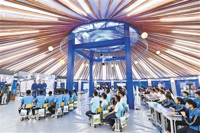 9月21日,120名中學(xué)生在阿拉善盟額濟(jì)納旗蒙古包地面課堂與空間站“同頻共振”,聆聽來自太空的聲音。內(nèi)蒙古日報(bào)社融媒體記者 王磊 攝