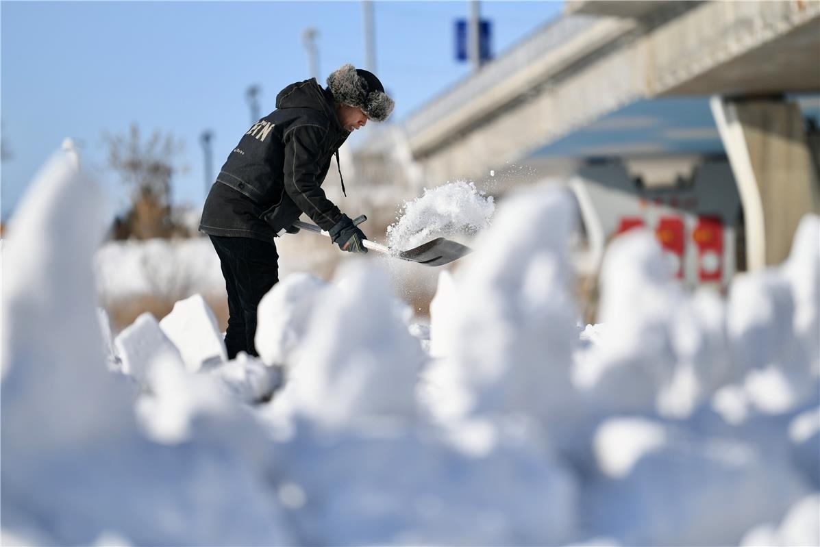 陳艷東每天只能利用中午最暖和的時(shí)間來(lái)雕刻