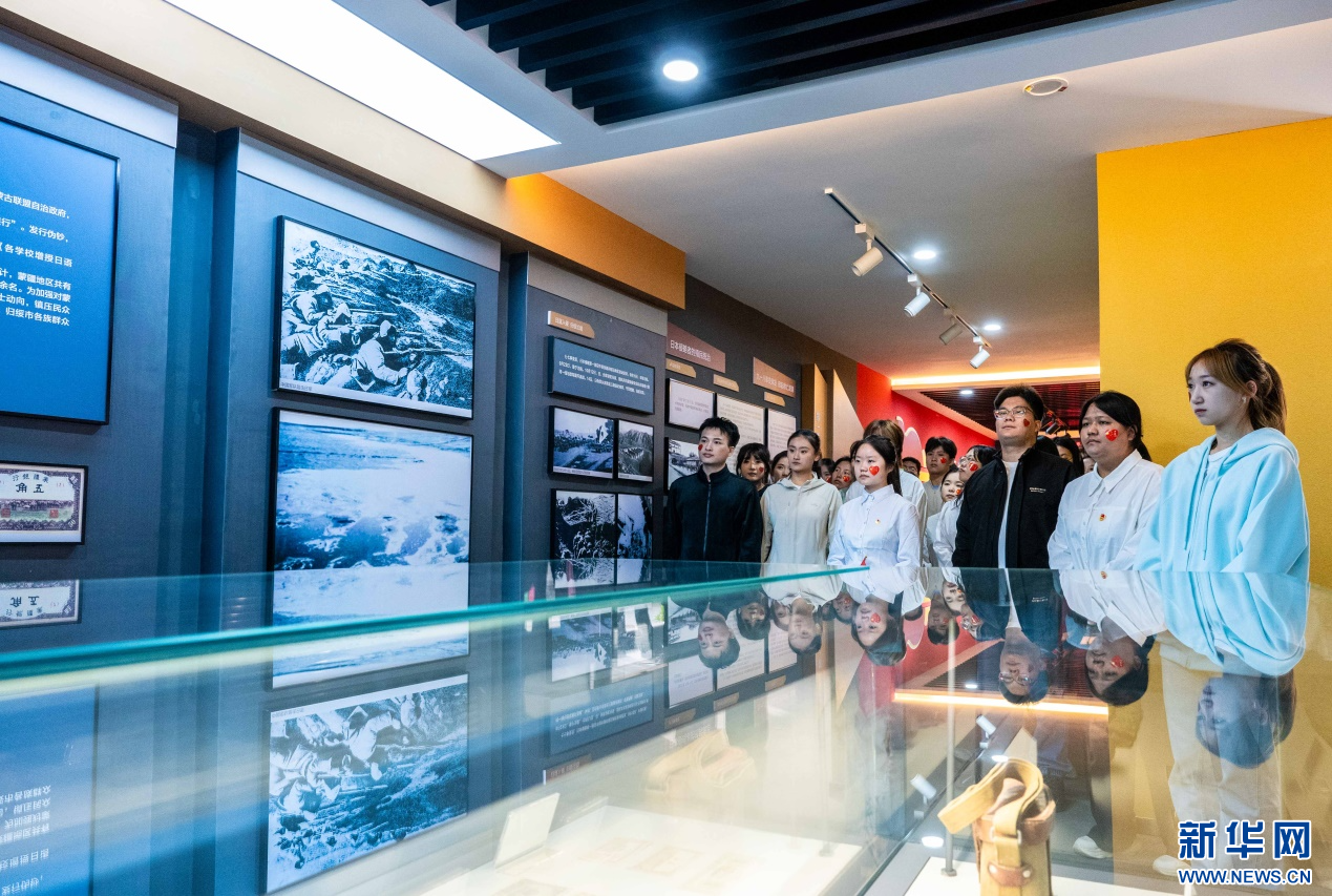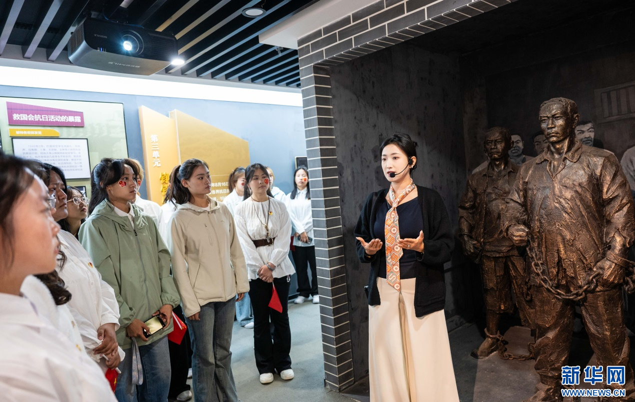 ??10月1日,內(nèi)蒙古師范大學馬克思主義學院的學子們在綏蒙各界抗日救國會舊址紀念館參觀研學。新華網(wǎng)發(fā)(丁根厚 攝)